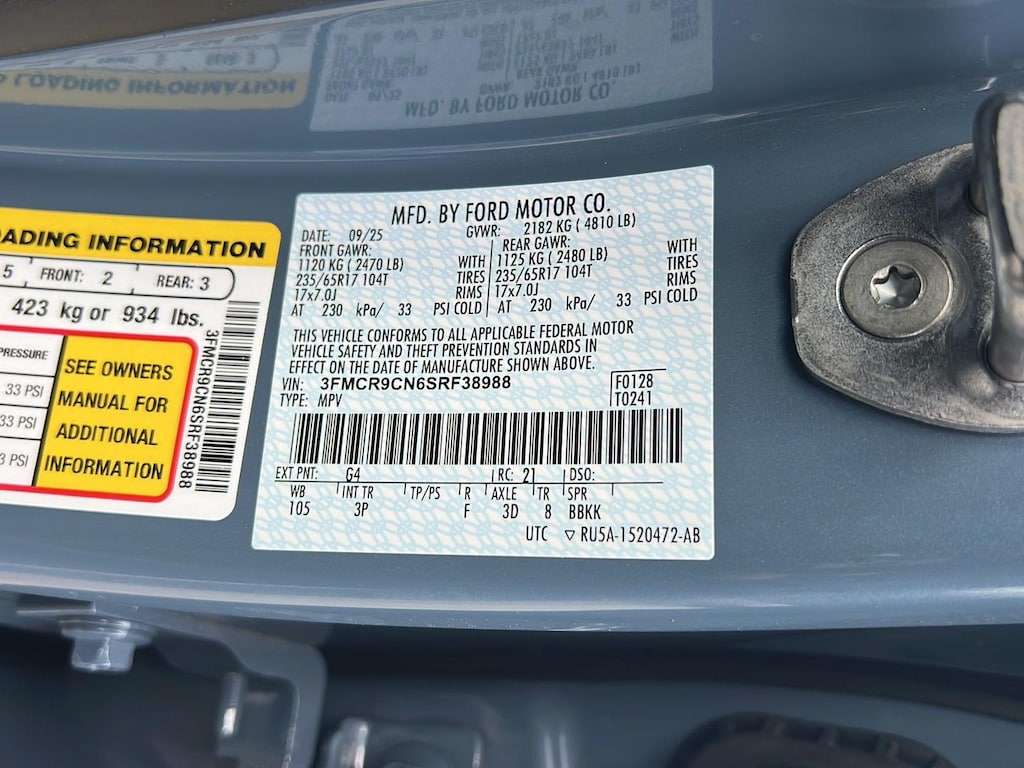 ENGINE: 1.5L ECOBOOST, AZURE GRAY METALLIC TRI-COAT, EBONY/ROAST, PREMIUM TRIMMED FRONT BUCKET SEATS W/EBONY/ROAST