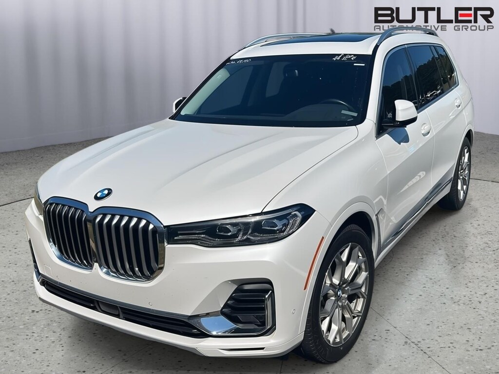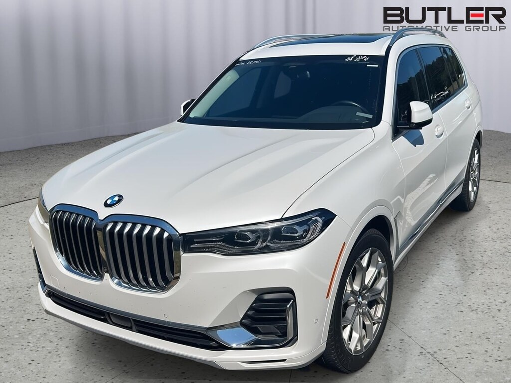 This 2020 BMW X7 xDrive 40i is Mineral White Metallic with a Black Vernasca Leather Interior. It comes very well equipped with a Driving Assistance Pro Package (Extended Traffic Jam Assistant, Active Driving Assistant Pro), Parking Assistance Package (Parking Assistant Plus, Drive Recorder, Parking View w/ 3D View), Premium Package (Remote Engine Start, Head Up Display, Gesture Control, Rear Manual Side Window Shades, Soft-Close Automatic Doors), Design Pure Excellence (Roof Rails in Satin Aluminum), 21" Y-Spoke Alloy Wheels, 8-Speed Automatic Transmission, Wireless Charging, WiFi Hotspot, Harman-Kardon Surround Sound System, SiriusXM Satellite Radio (Subsc.), CD Player Prep, Comfort Access Keyless Entry, Navigation System, Apple CarPlay Compatibility, ConnectedDrive Services, Wireless Charging, WiFi Hotspot (Subsc.), 5-Zone Climate Control, Ash Grain Bronze Matte Wood Trim, Universal Garage Door Opener, Connected Package Pro, Decoding for No-Dazzle High Beam Assistance, Trailer Hitch Prewiring, Heated Front Seats/Armrests and Steering Wheel, Multi Contour Seats, Comfort Access Keyless Entry, Lumbar Support, Tire Pressure Monitor, Privacy Glass, Active Blind Spot Detection, Frontal Collision Warning w/ City Collision Mitigation, Lane Departure Warning, Extended Shadowline Trim, Satin Aluminum Exterior Trim, Active Driving Assistant, Floor Mats, Rearview Camera, Luggage Compartment Package, Daytime Driving Lights, Travel and Comfort System, 2nd Row Captain's Chairs, and Glass Controls. Please ask for Internet Sales to receive this special internet offer!