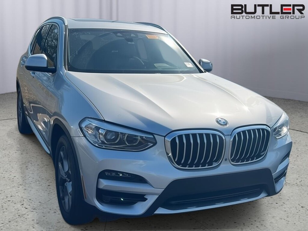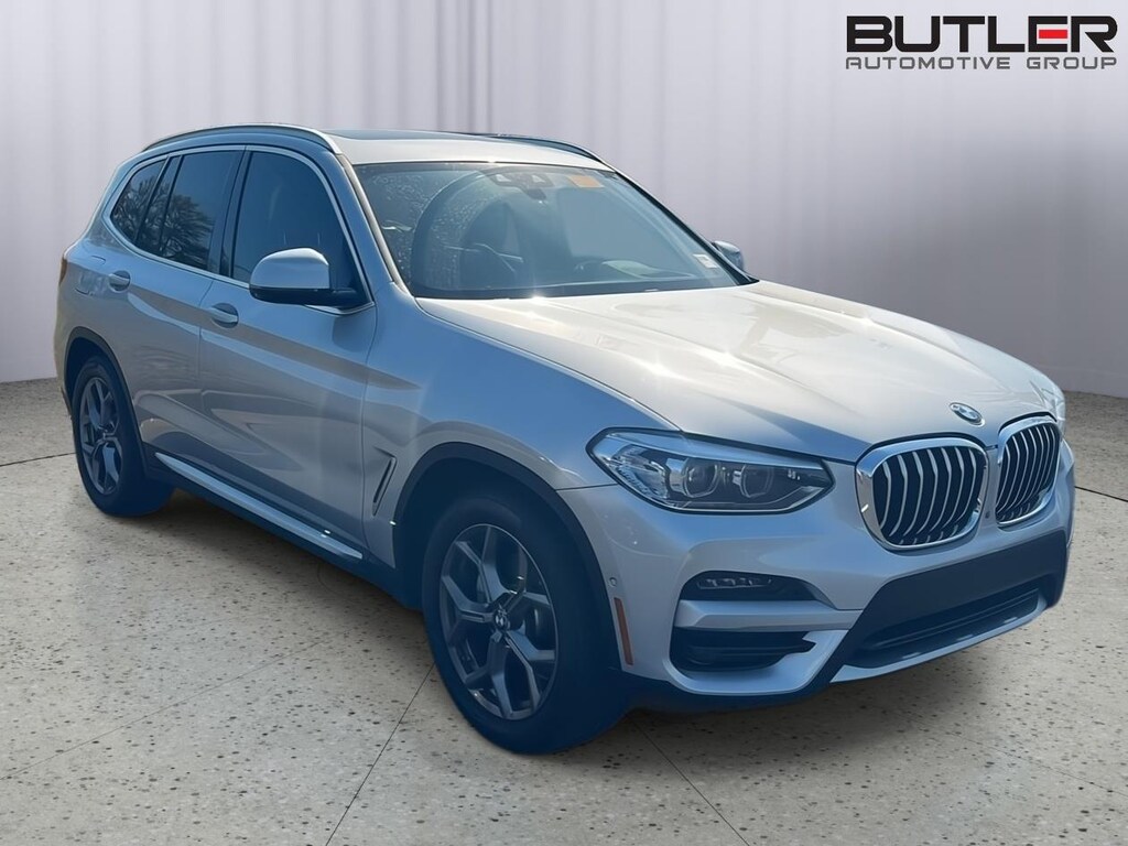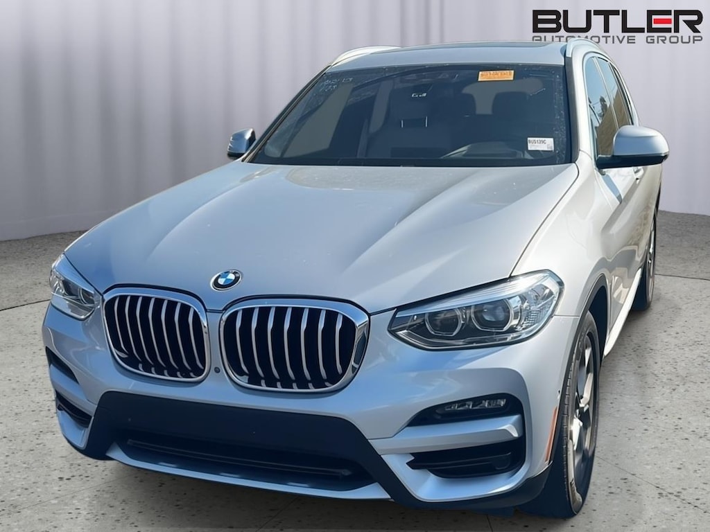 This 2021 BMW X3 is Glacier Silver Metallic with a Canberra Beige Interior. It comes very well equipped with a Premium Package (Heated Steering Wheel, Heated Front Seats, Head-Up Display, Comfort Access Keyless Entry, Panoramic Moonroof, Lumbar Support, Live Cockpit Pro (incl. Navi.)., Connected Package Pro), Parking Assistance Package (Parking Assistant Plus, Active Park Distance Control, Parking View w/3D View), xLine Package (19" Y-Spoke Wheels, Satin Aluminum Exterior Trim), Ambient Lighting, Power Front Seats, Navigation System, Apple CarPlay/Android Auto Compatibility, Universal Garage Door Opener, Power Front Seats, Apple CarPlay Compatibility, Automatic Climate Control, Auto Dimming Mirrors including Rearview Mirror, Storage Package, Tire Pressure Monitor, Hi-Fi Sound System, SiriusXM (by subscr.), Privacy Glass, Alarm System, Rear Seat Back Adjustment, Active Driving Assistant, Active Protection, Rearview Camera, Galvanic Controls, Active Blind Spot Detection, Frontal Collision Warning w/ City Collision Mitigation, Lane Departure Warning, Park Distance Control, Anthracite Headliner, Floor Mats, LED Foglights, Roof Rails in Satin Aluminum, Runflat Tires, Fineline Cove Matte Wood Trim, and Daytime Driving Lights. Please ask for Internet Sales to receive this special internet offer!