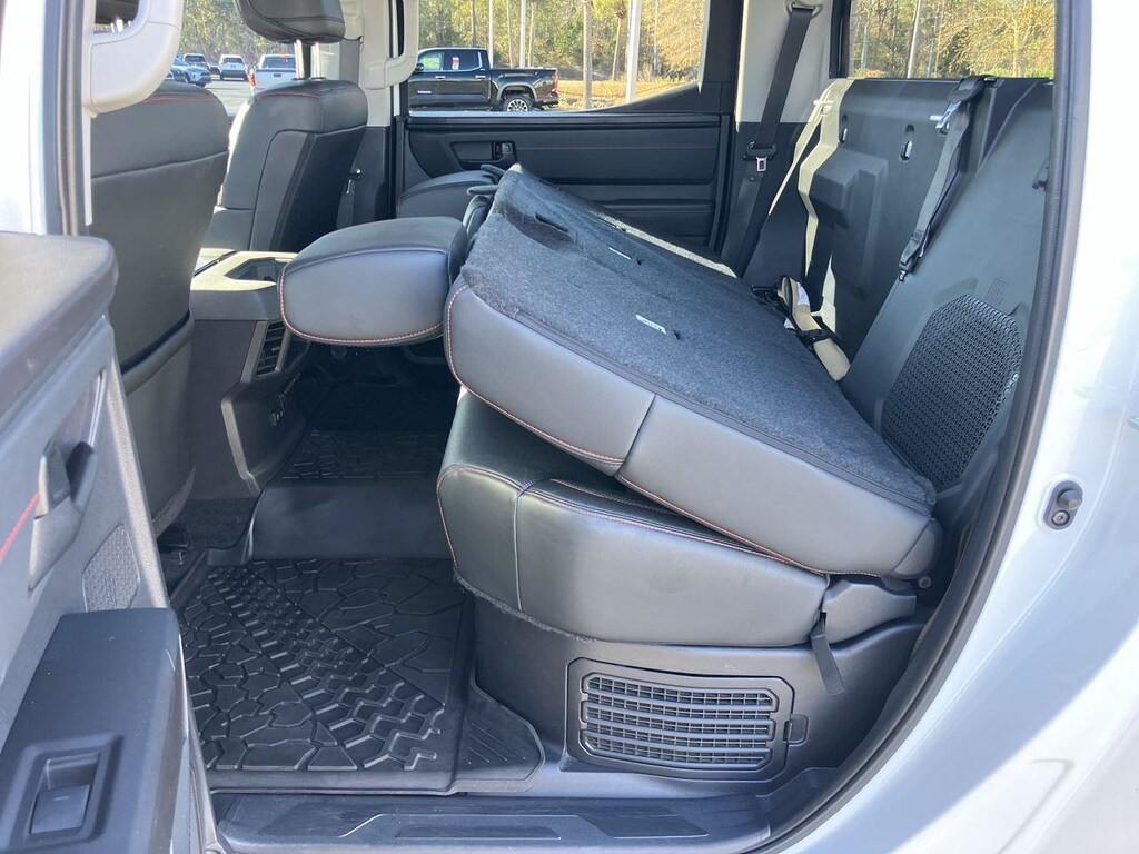 The Hybrid system on this Tundra is called Hybrid Max, and it shares the same engine as the non-hybrid option but is paired to a battery-electric system. This gives you up to 437 HP and 583 lb-ft. of torque. Per Toyota Factory specifications, this Tundra has a maximum towing capacity of 11,170 lbs. with a conventional hitch.The exterior color is simply called White. With the rugged looks and build of the Tundra, it really stands out.